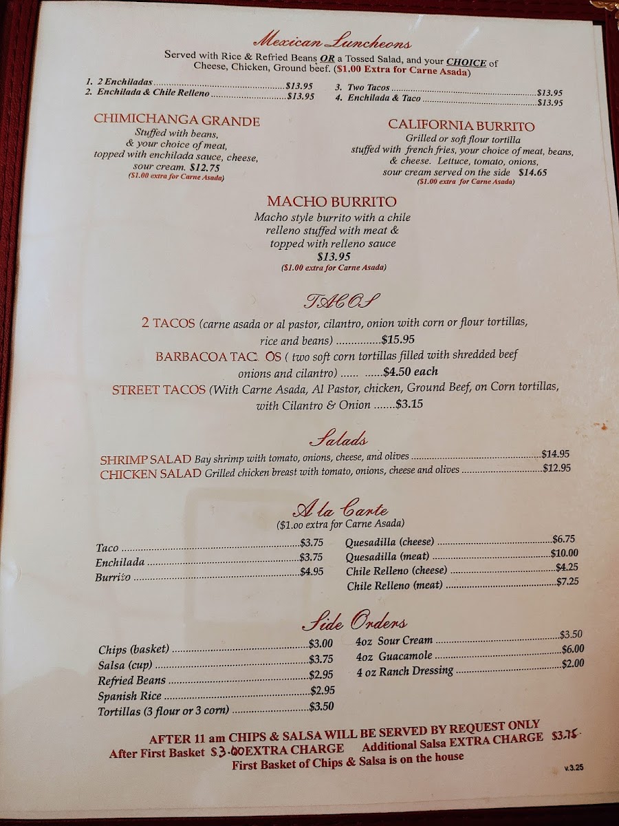 The American menu doesn't disappoint either, with choices like the Jumbo Shrimp Scampi ($16.99), Chicken Fried Steak ($13.99), and the New York Steak With Scampi ($17.99). If you're stopping by for lunch, the El Rojo and Cheeseburger (both around $10.99) are a must-try, along with the Loaded Nachos or Jalapeño Poppers as appetizers.